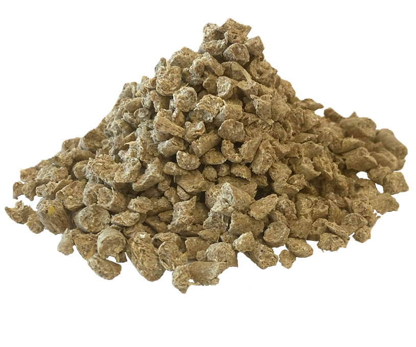 馬の食べやすさに配慮し、ペレットをさらに砕いたクランブル加工をしております。