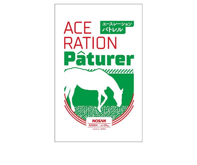 フランス語で「放牧」を意味する名前の通り、放牧時や牧草を十分に給餌できる馬向けのシンプルなサプリメント飼料です。