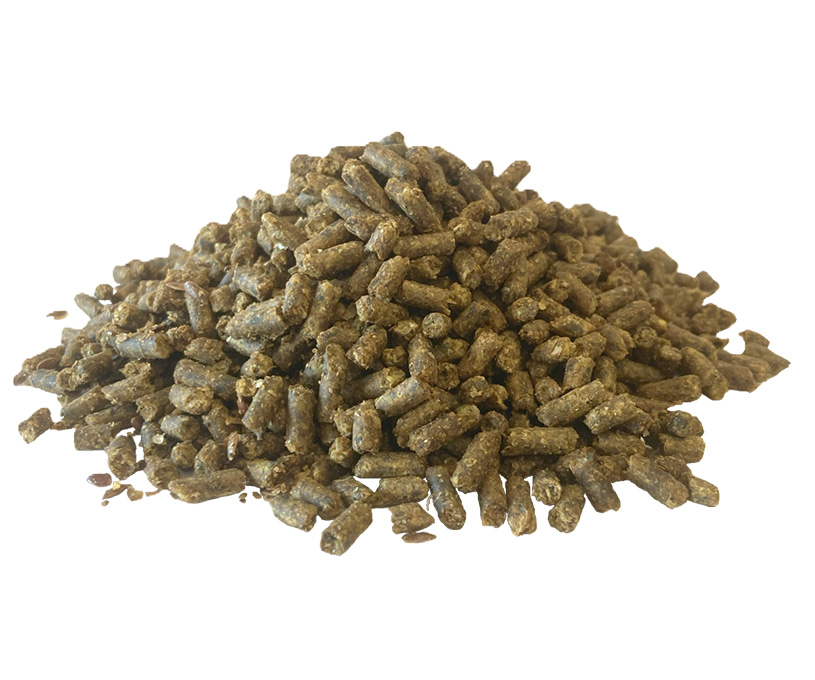 低デンプンで繊維質と油分からエネルギーを補給する配合飼料です。