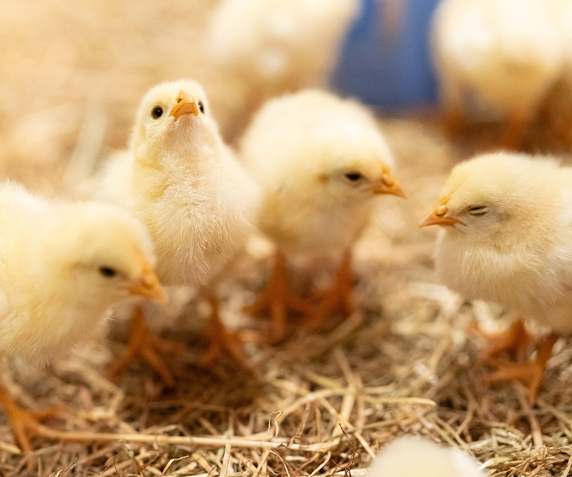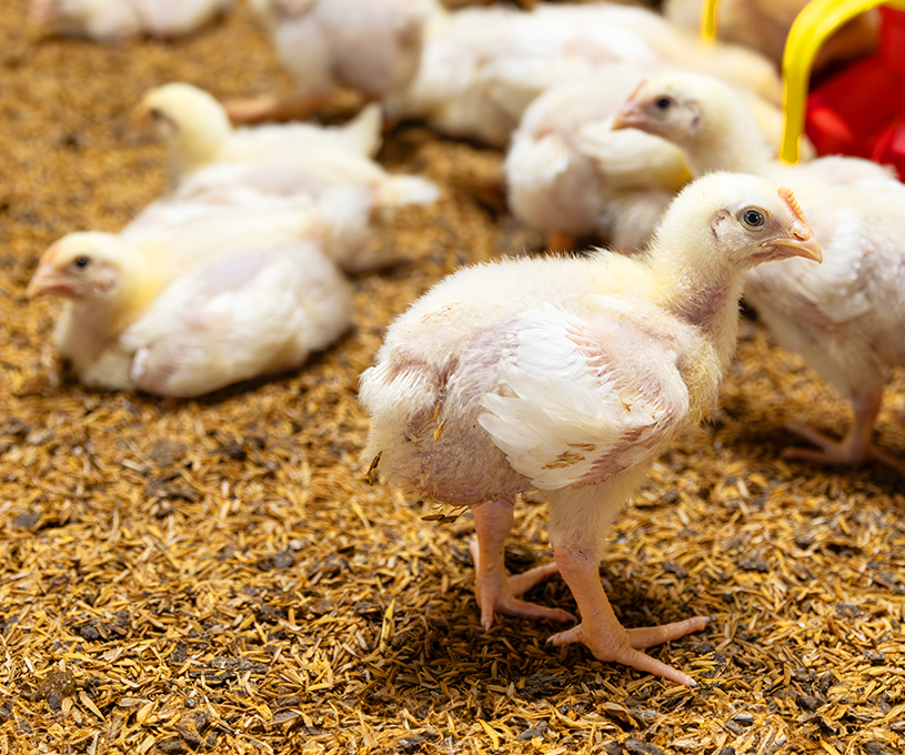鶏の成長に合わせて、スターター飼料には高たんぱく質を、体が大きくなるフィニッシャー飼料では高エネルギーを供給するよう設計しています。