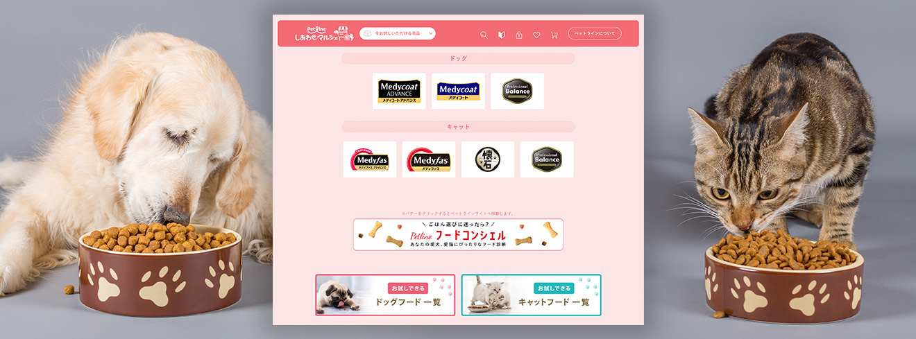 そんなお悩みを解決するため2022年4月にコミュニティサイト「ペットラインしあわせマルシェ」を開設しました。商品のお試し購入をはじめ、様々なお役立ち情報の提供により飼い主様をサポートしています。お客様と直接つながるサイトとして発展させ、お客様の声を商品開発に活かしていきたいと考えています。